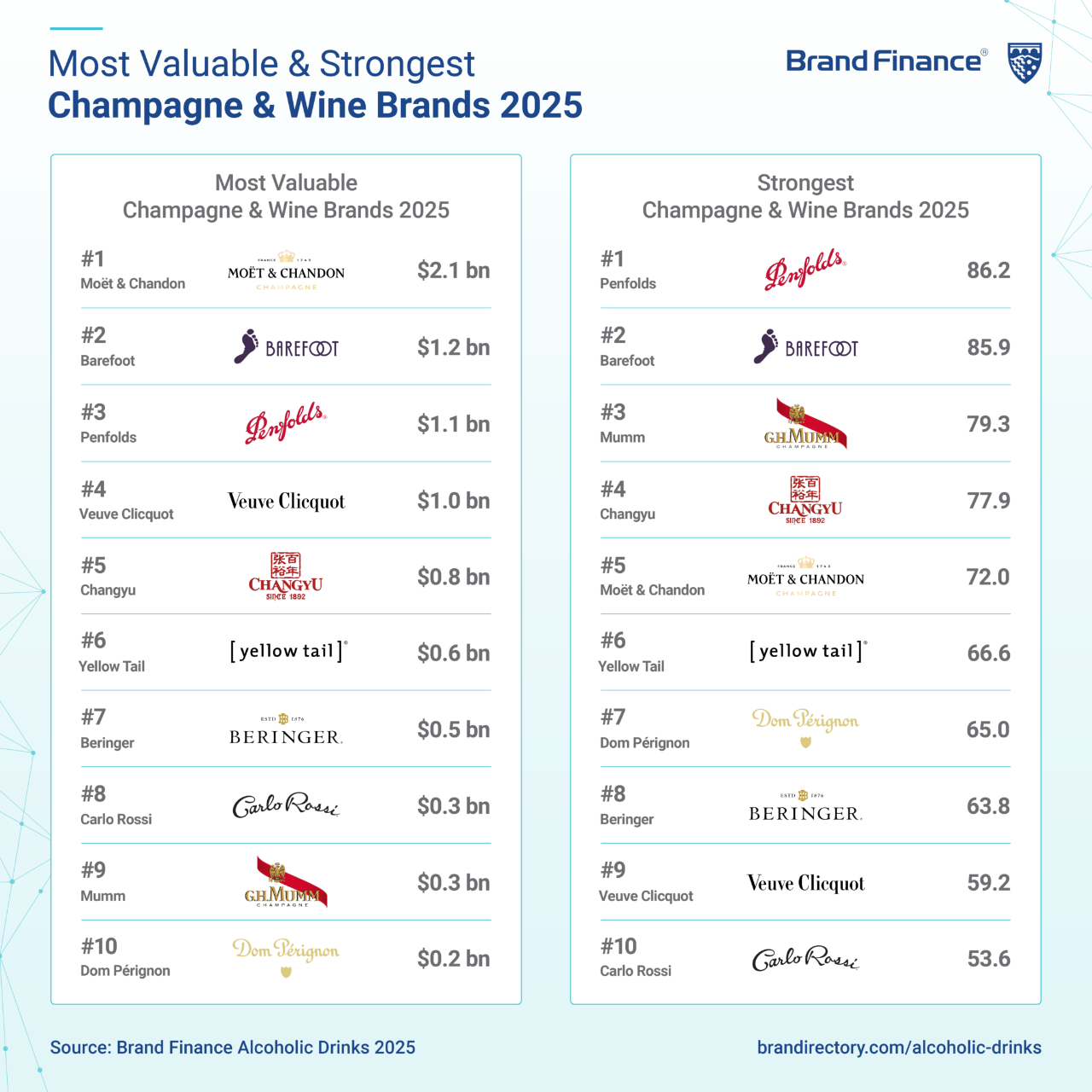 榜单内容按照酒精饮料类别分为《2025年度全球最具价值烈酒品牌50强》《2025年度全球最具价值啤酒品牌50强》《2025年度全球最具价值香槟与葡萄酒品牌10强》三个子榜单。