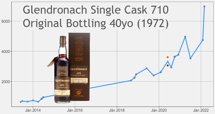 苏格兰威士忌方面,云顶Springbank是目前二级市场最热门的品牌,在过去四个月中,云顶Springbank 指数达到前所未有的价格暴涨超过 45%。2022年一季度,格兰多纳Glendronach 指数从 231 点上涨至 281 点,涨幅为 22%。格兰多纳Glendronach 40yo (1972) Single Cask 710就是最极端的例子,在二月份,它的售价为 4,700 欧元,但本月价格就接近 7.000 欧元。