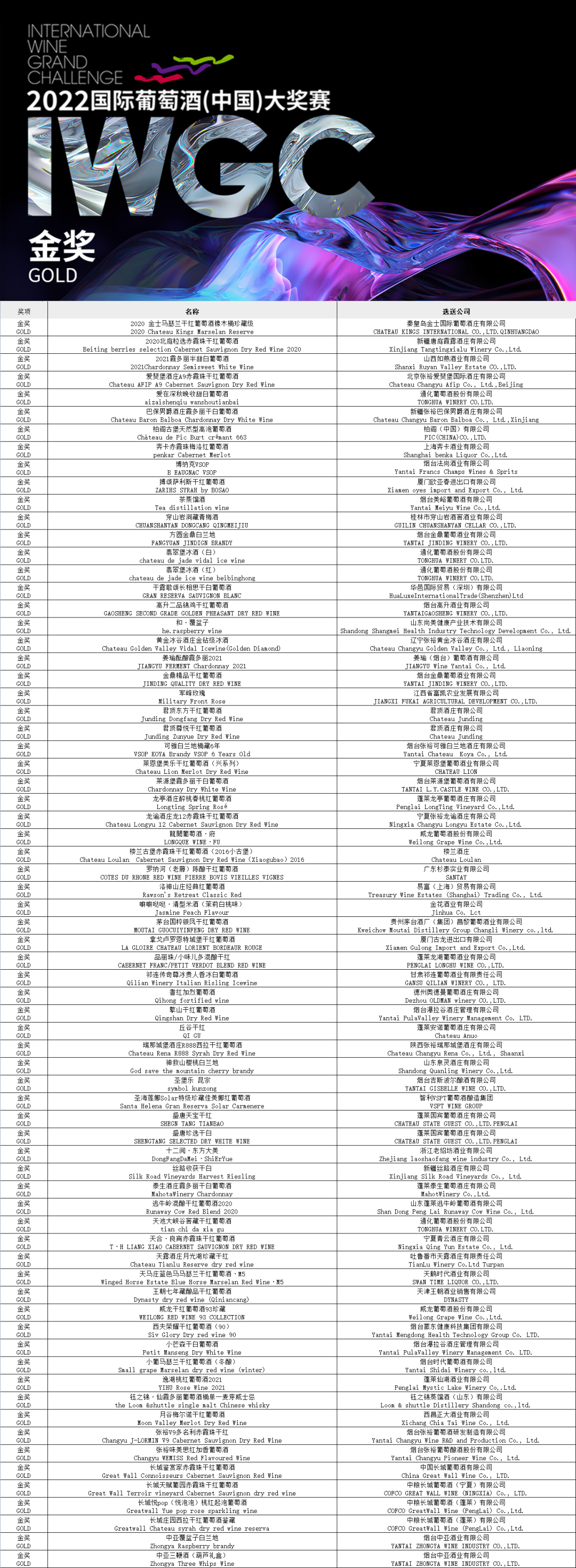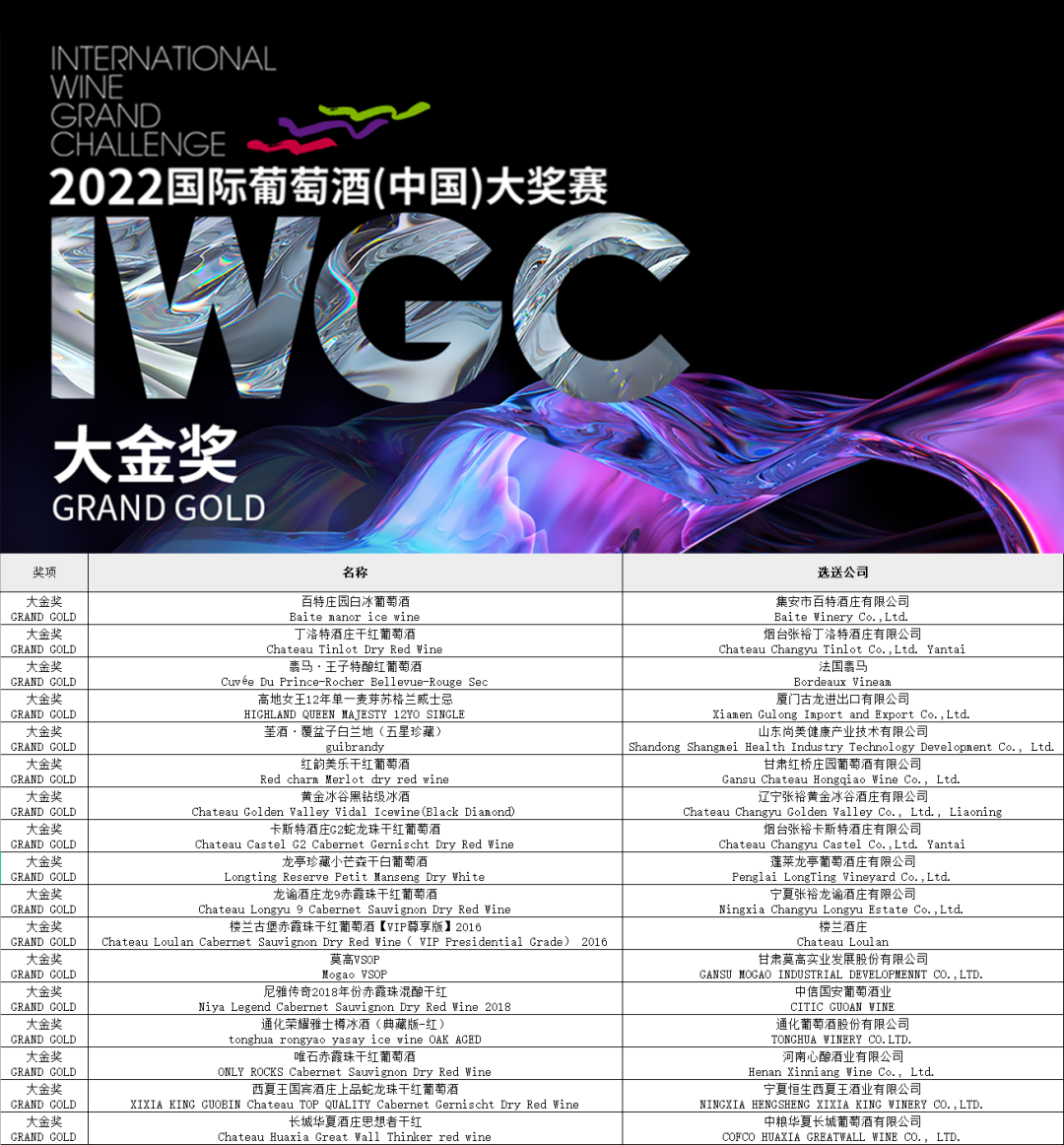 2022国际葡萄酒(中国)大奖赛(IWGC)完整榜单(排名不分先后):