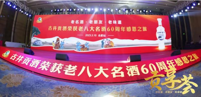 3月10日,以“老名酒?老朋友?老味道”为主题的古井贡酒荣获老八大名酒60周年感恩之旅首站在安徽合肥启幕。会上,承载古井贡酒老八大名酒荣耀的“古井贡酒·怀旧版”正式面向全国隆重发布,这款酒是古井贡酒集团确立简装酒战略之后的第一款真正意义上的面向全国的光瓶酒,定位古井贡酒全国化战略的塔基产品。