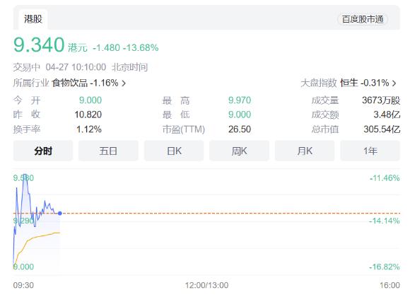 4月27日,珍酒李渡集团有限公司(简称“珍酒李渡”,06979.HK)在港交所上市,成为“港股白酒第一股”。截至上午10点,珍酒李渡股价9.38港元,较发行价10.82港元小幅下跌,市值306亿港元,约合人民币270亿元。公司上市后,吴向东拥有69.08%股权,约合人民币186亿元。