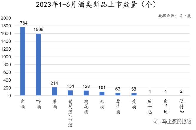 正如里斯战略定位咨询全球CEO张云所说,目前在中国酒类市场中白酒仍占据显著优势,这一结论在2023年1-6月酒类新品上市数量的对比之中也能够得到印证。数据显示,2023年1-6月白酒上市的新品数量高达1764个,约为位列第三的果酒新品数量的八倍;啤酒作为中国餐饮、居家等众多消费场景的热门选择,以1596个新品数量稳居第二;而威士忌、白兰地、伏特加等经典西方烈酒新品上市数量则仅有个位数,明显偏少。