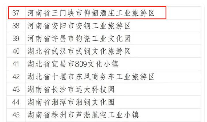 9月25日,文化和旅游部发布《关于推出北京市798艺术区等69家国家工业旅游示范基地的公示》。河南仅有三家,“河南省三门峡市仰韶酒庄工业旅游区”入选。