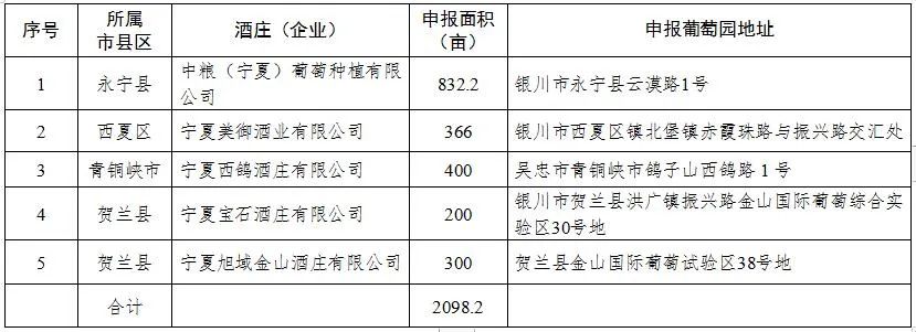 近日,贺兰山东麓园区管委会发布《关于开展2023年宁夏国家葡萄及葡萄酒产业开放发展综合试验区高标准葡萄园评选的通知》,经葡萄园主体酒庄(企业)申报,各市、县(区)自评推选,专家组实地评审、贺兰山东麓园区党工委会议研究,最终认定2023年宁夏国家葡萄及葡萄酒产业开放发展综合试验区高标准葡萄园为5家,公示名单如下。