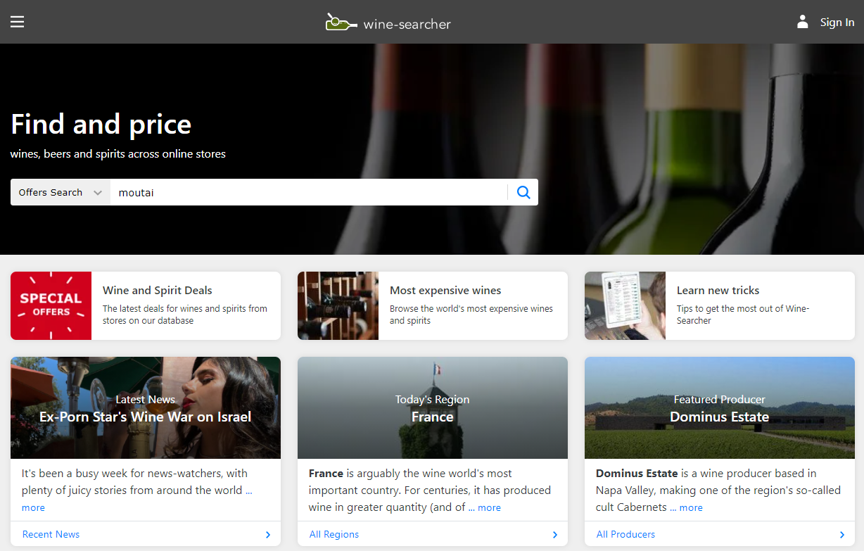 1、wine-searcher有官网也有自己的APP,网站就是在电脑浏览器内输入网址www.wine-searcher.com,在搜索输入框内输入酒款或酒庄的名字,就能查出想找到的酒。