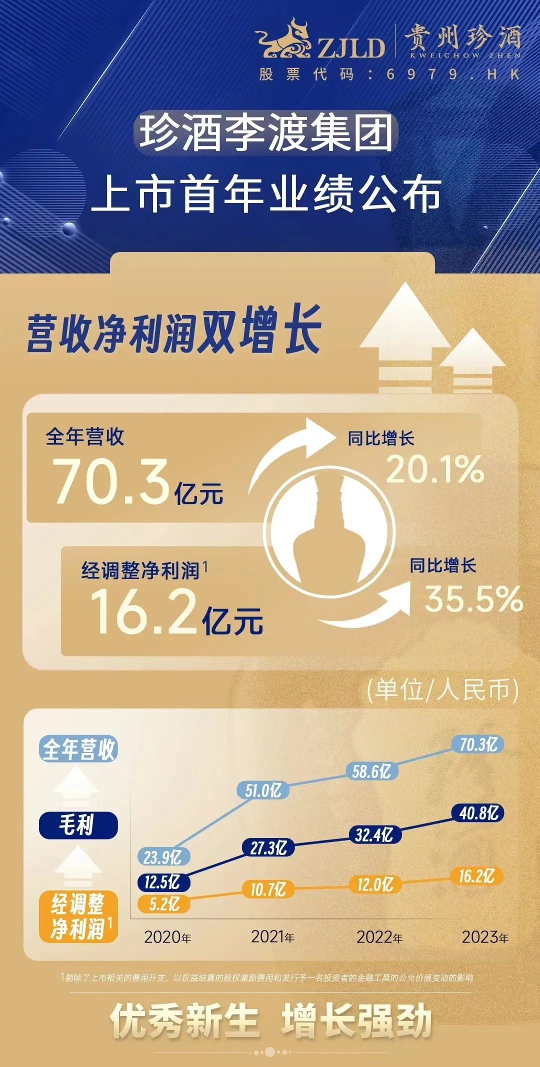 3月25日晚间,“港股白酒第一股”珍酒李渡(6979.HK)披露2023年业绩,在上市首年交出了一张可圈可点的成绩单。