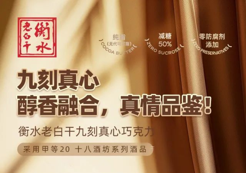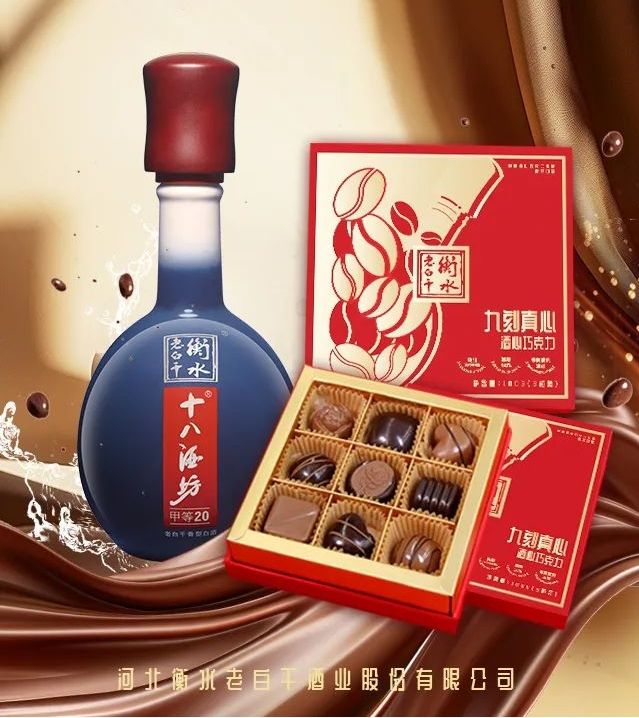 5月21日,衡水老白干官宣正式推出“衡水老白干九刻真心巧克力”,巧克力卖点主打纯脂(无代可可脂)、减糖50%、防腐剂零添加。据宣传资料介绍,该款巧克力有采用甲等20十八酒坊系列酒品。
